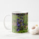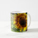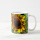 Un hermoso y alegre girasol en plena floración junto con algunos elegantes hollyhocks hacen de esto una fabulosa jarra. Una taza de café floral perfecta.