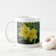 Diversos amarillos soleados, hemerocalíes, sobre un fondo de hojas verdes oscuras.