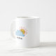 Mug dulce con un alegre sol amarillo mirando desde una gran nube azul con una plantilla debajo para agregar tu nombre, presupuesto, texto o borrar para dejar en blanco.