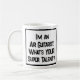 Un regalo divertido para alguien que toca guitarra al aire. Divertido eslogan en una taza de café que dice "Soy un guitarrista de aire ¿Cuál es tu gran talento?". Coffee Mug para un guitarrista aéreo. Texto en negrita en blanco y negro.
