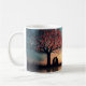 Un diseño de historias de amor de ensueño y poco común con dos amantes bajo un árbol en forma de corazón resplandeciente, con estrellas, luz de la luna y aviones de papel volador que transportan corazones. Una perfecta obra de arte romántica para las tazas que capta emociones profundas y amor eterno.