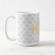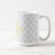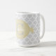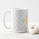 Disfrute de su café matutino con una taza de café personalizada de cuatrefoil amarillo. El diseño de la alfombra presenta un sencillo fondo de quatrefoil y un elegante emblema para personalizar con su nombre y monograma. Artículos de regalo adicionales disponibles con este diseño así como una variedad de colores.