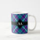 Decoración de color verde marino, morado y azul tartán. Patrón sin foco. texto personalizado y monograma.