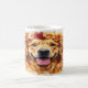 Beautiful watercolor portrait of a happy Golden Retriever adorned with a delicate floral crown! This artistic mug captures the joy and loyalty of man's best friend with soft brush strokes and warm earth tones. Perfect for dog parents who want to celebrate their furry family member. The high-quality print showcases every detail of this original artwork. Makes a heartwarming gift for birthdays, holidays, or as a memorial keepsake. Dishwasher and microwave safe for daily use.