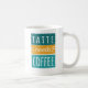 Tatte Necesita Café Mug. Este lindo tazón de café hace el regalo perfecto para cualquier padre cuyos hijos lo llaman Tatte en lugar de papá. (Tate significa padre o padre en yiddish.) Esta graciosa taza de café dice "Tatte necesita café". Tiene un fondo blanco con gráficos verde azulados / turquesa / aqua y amarillos.