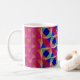 Una taza de café colorida que encantará a cualquier entusiasta que acolcha, con un diseño de un choza-edredón del remiendo de Judy Adamson.