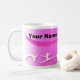 El diseño completo del abrigo de la gimnasia en esta taza está en púrpuras y rosas. ¡Añada su nombre fácilmente a esta taza o añada su niño/nieto y délo como regalo único!