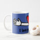 Expresa cuánto amas a alguien con este lindo diseño que tiene dos brazos abiertos y un corazón rojo. "Te amo tanto" texto en negrita y moderna tipografía negra. Fondo azul.