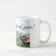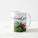 Café Mug con una fotografía de una mano sosteniendo hojas de té, afuera en una granja de té, con las palabras "¡Prefiero té, gracias!