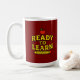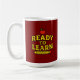Features bold “Ready to Learn” typography with apple & pencil motif on matte black ceramic