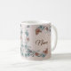 Teal Silver Floral Copper Butterfly Tan Wedding Coffee Mug. Unique, beautiful, modern design. Easy to be personalized. Font style, size and colors can be changed. Matching items available.