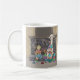 Obra del libro de mis hijos "Field Trip to the Alpaca Farm". Ilustracion gracioso de una alpaca tejiendo una bufanda colorida en la tienda de hilados.