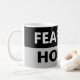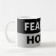 Blanco audaz y moderno, con una taza de trompeta, coroneta, cuerno de flugel, eufonio, cuerno francés, cuerno de baritone, tuba, trombón, cuerno de tenor, bugel u otro músico que toca cuerno, con las palabras editables, TEMOR A LOS CUERNOS. Especialmente genial para los miembros de una banda de marcha. Otras tazas disponibles en esta serie. Diseñado por Heard_. Ver más diseños musicales en mi tienda Zazzle, Heard_, aquí: https://bit.ly/3aGBOO6 #Horns #Trumpet #FrenchHorn, #Coronet #MusicianGift #MusicMug