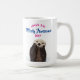 Una taza con una nutria adorable sosteniendo su rostro en sus patas. El texto encima de su cabeza dice: Que tengan un día tremendamente genial. Cute juego de palabras escrito en una moderna tipografía.