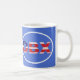 OBX en los colores de la bandera estadounidense en un óvalo azul cielo.