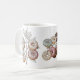 Featuring a surreal and innovative design, this mug depicts a variety of delicious doughnuts – covered in chocolate, pink glass, and colourful sprinkles – dangling like fruit from a tree branch drawn in fine detail. The detailed illustration style inspired by Botanical Art gives this mug a distinct artistic touch that makes it as much a decorative piece as it is a coffee-drinking tool.