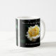 An 11 oz. mug set with a photo of a yellow rose with a darkened green-leaf background. Inspirational