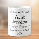 Celebra a la mejor tía del mundo con esta jarra de fotos que muestra a niños escribiendo a mano cuatro fotos de sus sobrinas, sobrinos, sus nombres, "Te amo tanto" o "Te amamos tanto", y si se le llama "tía", "tía", "Tía", etc.