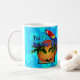 Estoy en ilustraciones y diseños del tiempo de la isla. El tiempo de la isla es una referencia a cómo la vida está en las islas, gente es más conveniente retrasar y disfrutar de vida. Bastante que el vorágine normal vivimos adentro en la tierra principal. Con un loro pintado colorido y un individuo relajándose en una hamaca estirada entre dos palmeras que miran el sol fijado sobre el océano. Fondo del azul de océano de las tortugas de mar hawaianas azules de Honu y del estampado de plores azul del hibisco.