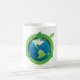 Un globo de tierra verde con flechas verdes a su alrededor. Este diseño parece realmente efectivo en estos Mug