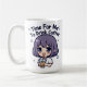 Super cute kawaii chibi girl with short purple hair drinking iced coffee boba