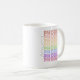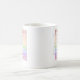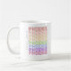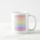El diseño de la taza de café que dice "Phoenix" es blanco de color con negro, rojo, naranja, dorado, amarillo, verde, azul, morado y rosa. Es ideal para tomar café o té por la mañana. También hay microondas y lavavajillas.