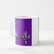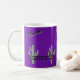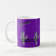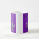 El diseño de la taza de café que dice "Incorporado el 25 de febrero de 1881" y "Phoenix" es de color púrpura con un mango blanco y una llanta blanca. Es ideal para tomar café o té por la mañana. También hay microondas y lavavajillas.