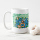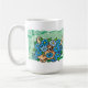 Toro dulce de Taurus con flores azules por toda su cabeza. Flores verdes, estrellas y fondo luna creciente. Gran regalo de cumpleaños para las personas nacidas en abril o mayo.
