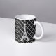 Selección de estilos de taza, incluyendo el vidrio. Torres Eiffel Plata en escalas de sirena y negro.