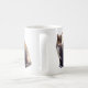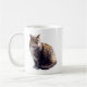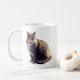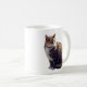 Un gato de infantería de toros con un pecho blanco y patas se sienta elegantemente con su piel iluminada por la luz solar suave. El gato lleva un collar rojo con una campanita que le da un toque de encanto. Su atenta mirada se dirige a un lado, lo que sugiere una sensación de calma.
