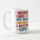 Este diseño es para todos los propietarios de perros dedicados. Con la frase relativa "Trabajo duro para que mi perro pueda tener una vida mejor" en una mezcla de colores vibrantes, esta camisa es una manera divertida y sincera de mostrar tu devoción a tu mejor amigo. La adición de sutiles huellas de pata lo convierte en el diseño perfecto para todo aquel que ame más que nada a su compañero canino.
