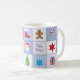 Una taza con un patrón de símbolos Navidades en tonos azules. Puedes personalizar los textos de 'Feliz Navidad' y 'Felices Fiestas' de una manera fácil. Feliz Navidad!