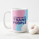 Muestre su apoyo a la comunidad trans con esta jarra de cerámica que incluye la bandera transexual y el texto "Yo apoyo a las personas trans" en la parte delantera y trasera.