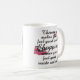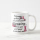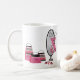 Palabras de moda que dicen: "La terapia te hace sentir bien por dentro... Comprar te hace sentir bien por dentro y por fuera". El diseño tiene elementos de moda rosados y negros - un vestido, tacones altos y bolsas. Gráficos de J.Rett Graphics