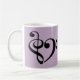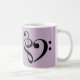 El diseño de este fondo compuesto de bajo y de corazón musical de trébol se presenta sobre un fondo púrpura pálido, que se puede cambiar fácilmente a cualquier color claro de su elección. Coffee mug es un regalo para cualquier amante de la música, músico, profesor de música o estudiante de música.