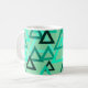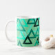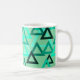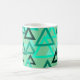 El diseño de esta taza ha dispersado triángulos de múltiples tamaños en tonos de verde marino.