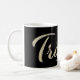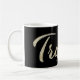 Eine sehr schöne edle personalisierte Tasse / Kaffeetasse / Teetasse im whitegold Lettering Look auf schwarz für Tristan.