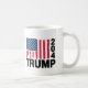 El diseño presenta una bandera estadounidense angustiada con una textura gruesa que le da un aspecto áspero y pintado. La bandera incluye un campo azul con estrellas blancas en la esquina superior izquierda y franjas verticales rojas audaces. A la derecha de la bandera, el número "2024" se muestra en un tipo de letra negro fuerte y negrita, posicionado verticalmente. Debajo de la bandera, la palabra "TRUMP" está prominentemente escrita en negritas letras negras. El diseño general tiene un tema patriótico y relacionado con la campaña, enfatizando un estilo escarpado y pintado a mano que transmite un sentido de fuerza, resiliencia y nacionalismo.