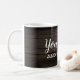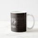 Una hermosa taza con un fondo rústico de madera y el mensaje "You & Me" Personaliza con tu propio texto.