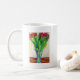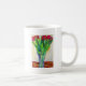 De una pintura acuarela de arte original de flores de tulipán rosadas y rojas en un jarrón de vidrio del artista Sacha Grossel. El arte de la vida todavía es original y colorido. Los tulipanes son una flor de invierno popular en Holanda.