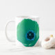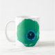 Esta taza de bonito muestra una hermosa fotografía de un tulipán. La fotografía ha sido de color artificial, lo que ha resultado en una flor verde con un centro azul y negro. El efecto de la luz solar que resplandece los pétalos en la foto original da a esta imagen alterada un efecto brillante como si estuviera hecha de vidrio. El diseño se muestra en una taza de café blanca básica, pero también está disponible en otros colores y estilos de tazas. Esta taza de café fría haría un gran regalo.