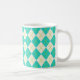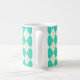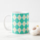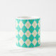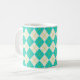 Este tazón de café está decorado con un vibrante diseño de argyle turquesa. El diseño es de arte original.
