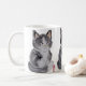 Esta es una de mis pinturas acuáticas de estilo oriental con mi marca "TUZI" roja. ¡Un gatito blanco y negro con sueño se ve tan suave! La imagen se repite tres veces alrededor de la taza. ¡Perfecto para un amante de los gatos!