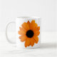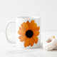 One Large orange daisy / flower on the back and a smaller orange daisy and Your Name / message (example Best Mom) in elegant, casual black hand-written fonts coffee mug / cup