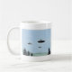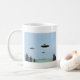 Una acuarela de tres OVNIs de platillo sobre las montañas adorna esta divertida taza.