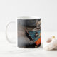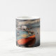 un viejo barco blanco, azul y rojo llamado "Tugger" corre a la orilla.