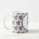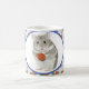 Esta taza de colores para niños muestra mi dibujo de un adorable hámster gris esponjoso sosteniendo un huevo de Pascua con un fondo de pequeños huevos con estampado brillante. Perfecto para llenarse de dulces de Pascua y un regalo encantador.