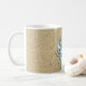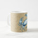 Un dibujo de un cangrejo en azul se superpone sobre un fondo bronceado texturizado en esta taza de café con temática oceánica. Perfecta para cualquiera que ame la playa, la naturaleza y la vida marina.