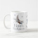 Taza De Café Una Luna Creciente, Cones De Pino. Felices fiestas
