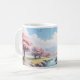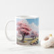 Taza De Café Una Montaña, Un Río Y Un Árbol En Primavera